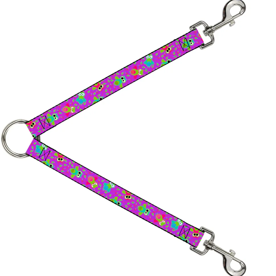 Dog Leash Splitter – Flying Owls w/Leaves Purple/Multi Color