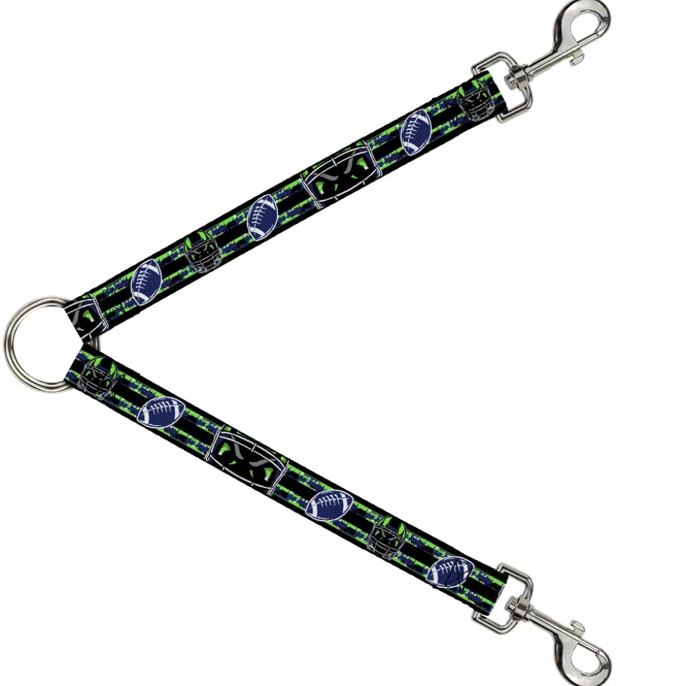 Dog Leash Splitter – Football/Helmet Stripe Black/Neon Green/Blue