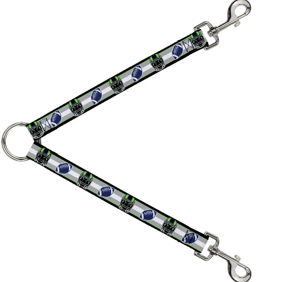 Dog Leash Splitter – Football/Helmet Stripe2 Black/Neon Green/Silver/White/Blue