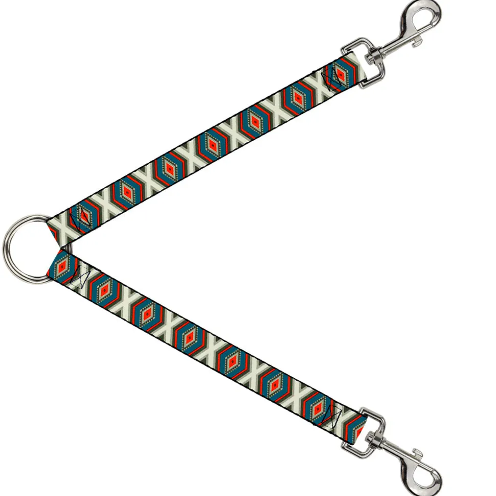 Dog Leash Splitter – Geometric Diamonds Grays/Red/Turquoise