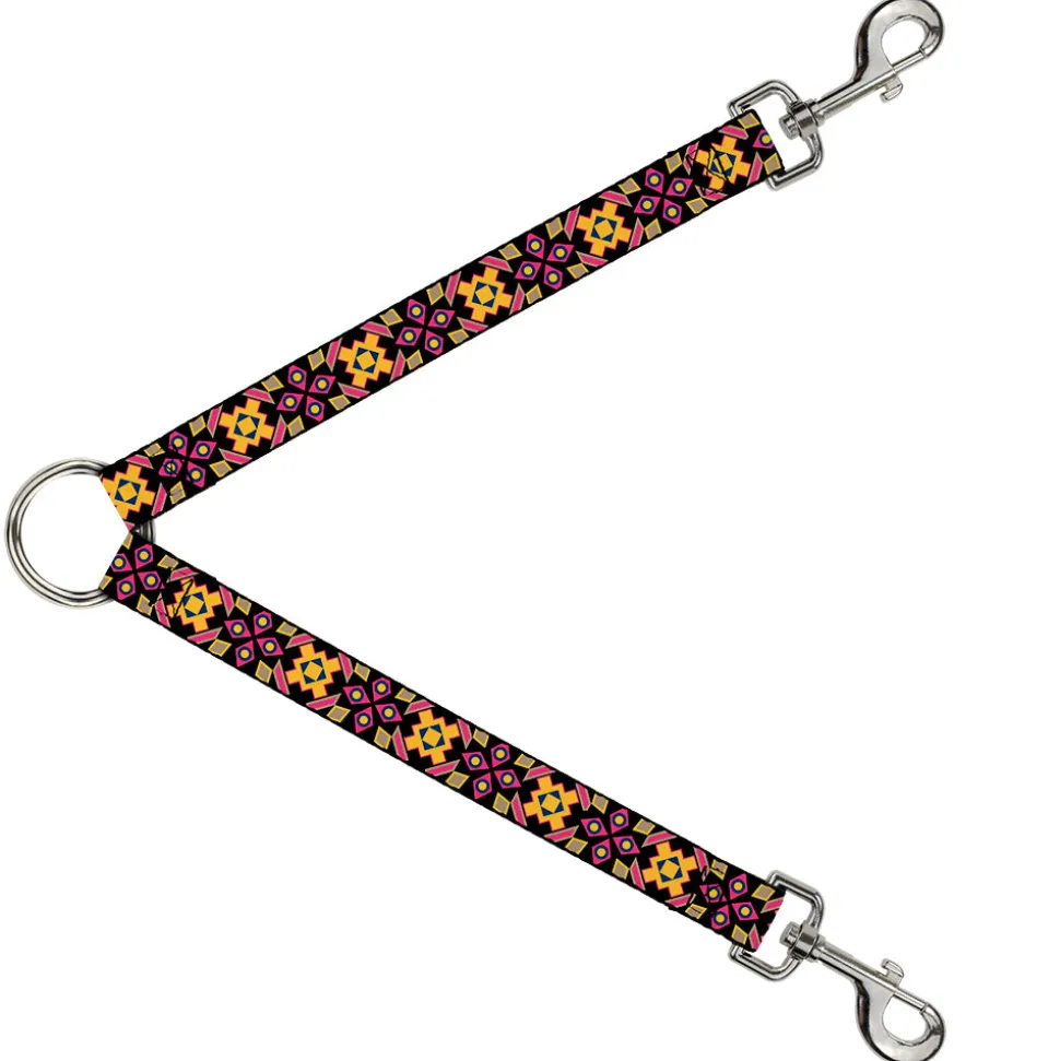 Dog Leash Splitter – Geometric Sunburst Black/Pink/Yellow/Blue