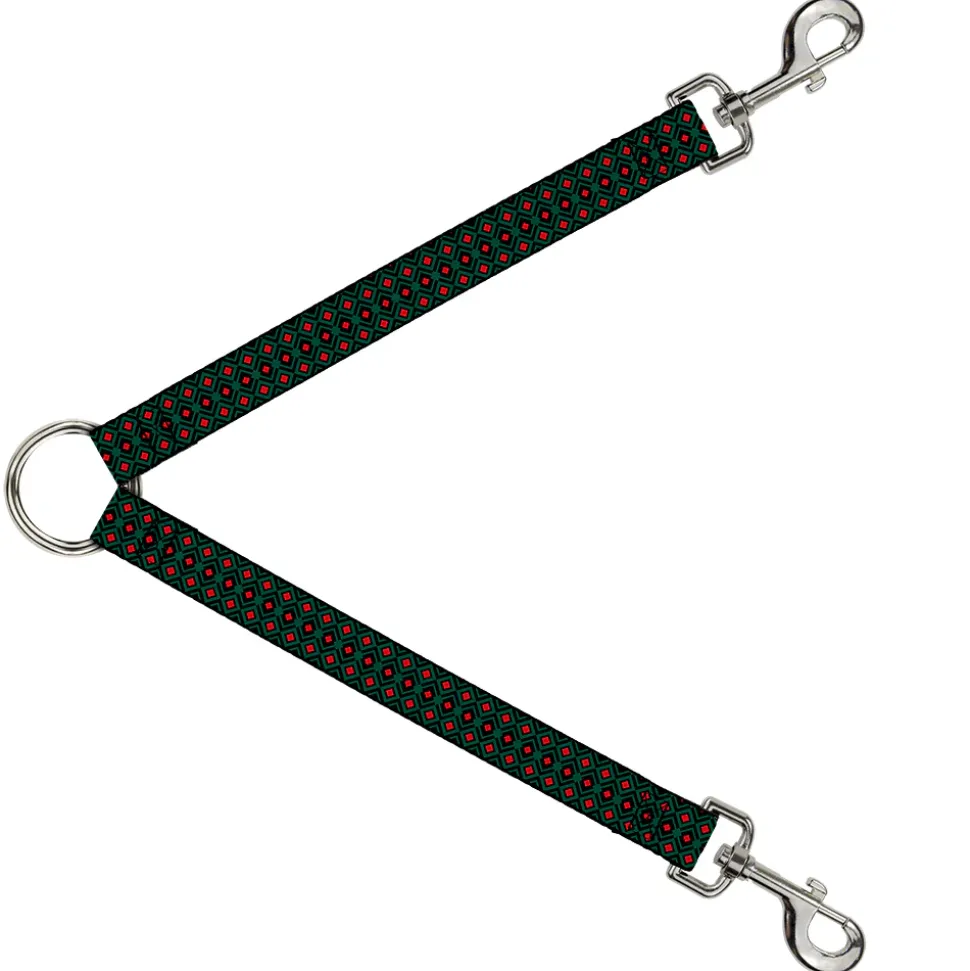 Dog Leash Splitter – Geometric3 Black/Forest Green/Red
