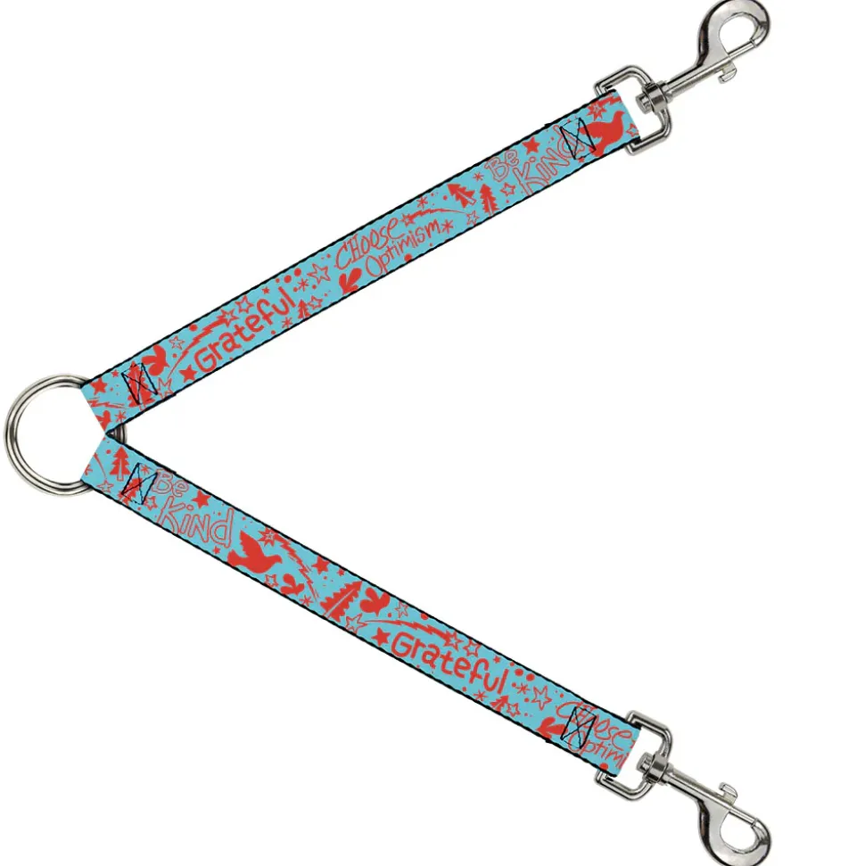 Dog Leash Splitter – GRATEFUL OPTIMISM BE KIND Icons Collage Blue/Red