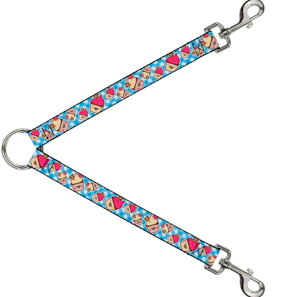 Dog Leash Splitter – Happy Cupcakes Buffalo Plaid White/Blue