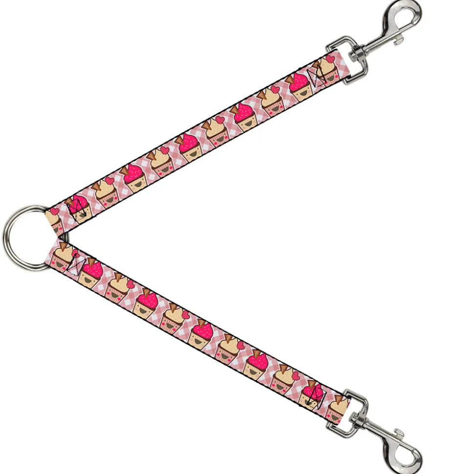 Dog Leash Splitter – Happy Cupcakes Buffalo Plaid White/Pink