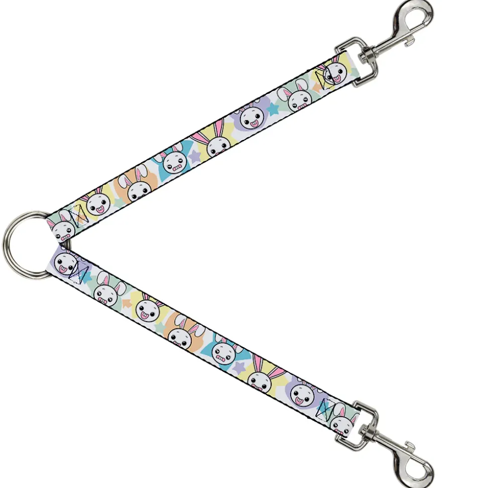 Dog Leash Splitter – Happy/Sad Bunnies & Stars White/Pastel