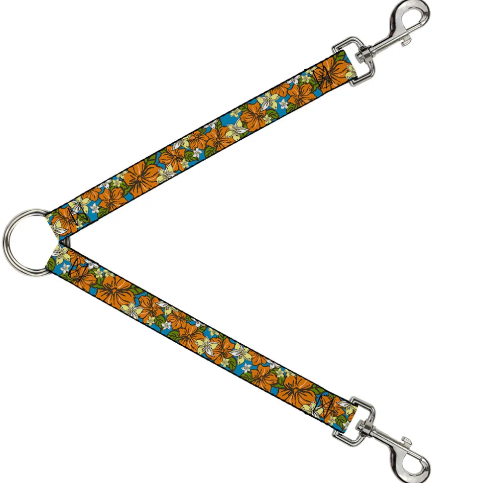 Dog Leash Splitter – Hibiscus Collage Blue/Orange/Yellow