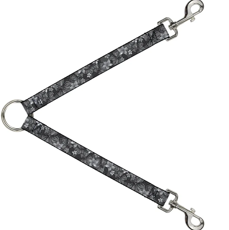 Dog Leash Splitter – Hibiscus Collage Gray Shades