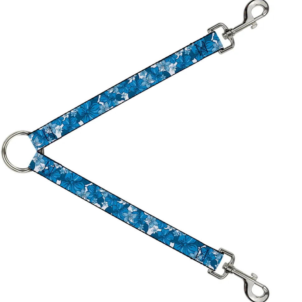 Dog Leash Splitter – Hibiscus Collage White/Blues