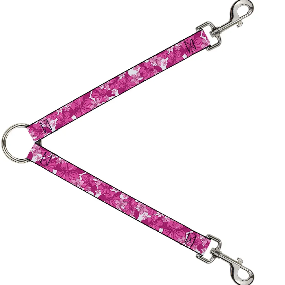 Dog Leash Splitter – Hibiscus Collage White/Pinks