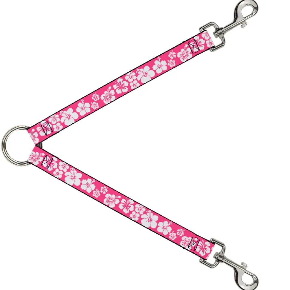 Dog Leash Splitter – Hibiscus Neon Pink/White