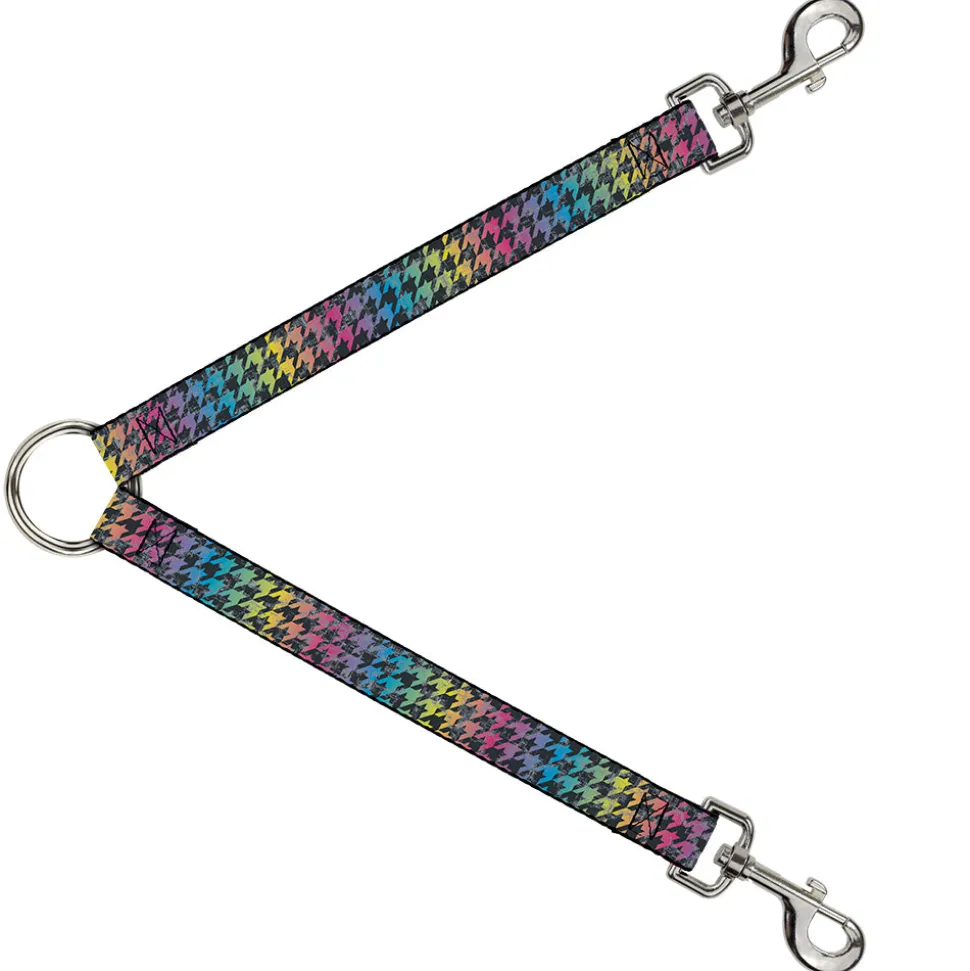 Dog Leash Splitter - Houndstooth Black/Rainbow