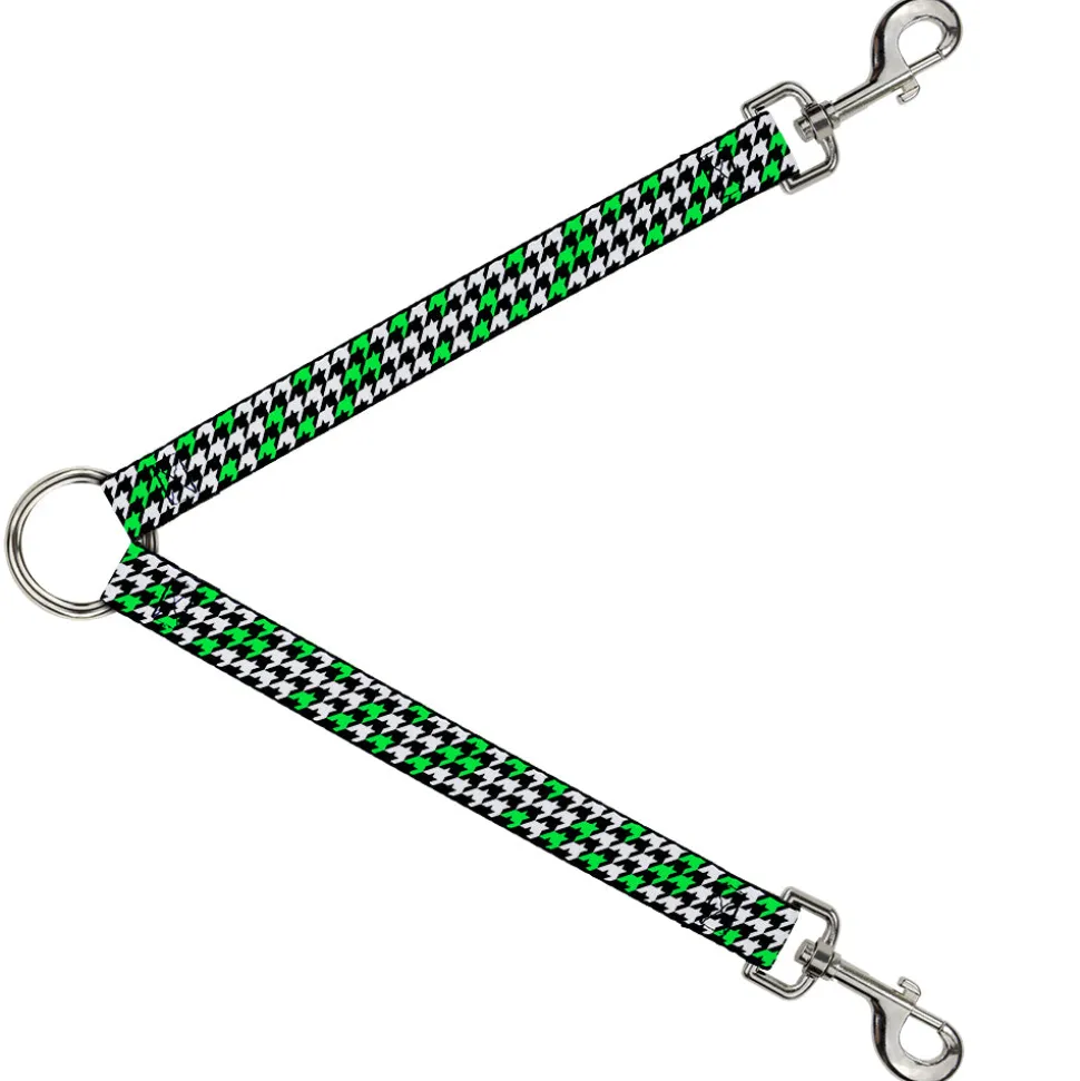 Dog Leash Splitter – Houndstooth Black/White/Neon Green