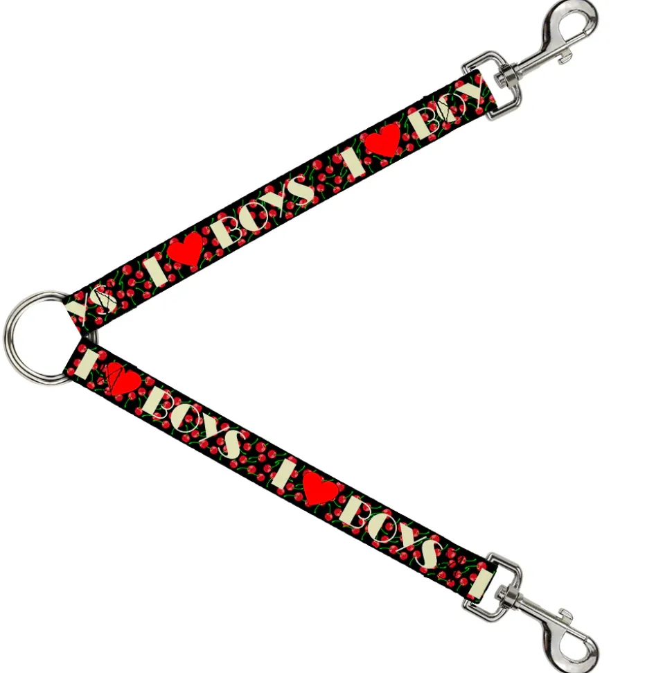 Dog Leash Splitter - I Heart BOYS Black/Cherries