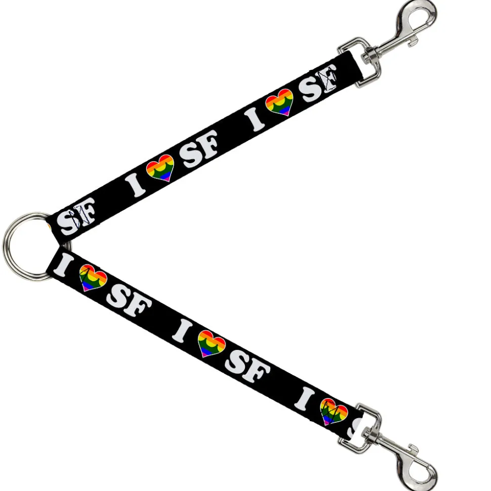Dog Leash Splitter – I "HEART BRIDGE" SF Black/White/Rainbow