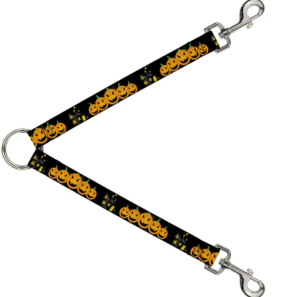 Dog Leash Splitter – Jack-o'-Lanterns/Haunted House Black/Yellow