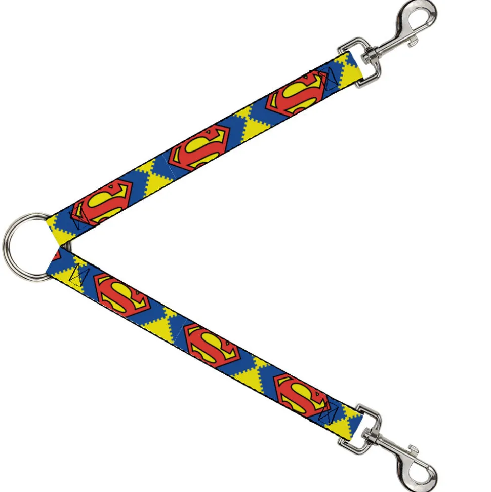Vibrant and bold, this beautiful, polyester dog leash splitter is made to show off your dog’s unique style through all the seasons. With durable webbing and a strong ring, this tough splitter can hold up to whatever your dogs can dish out. This leash splitter features two 1-inch wide, 14-inch long lead extensions and has a total combined length of 30 inches. This product is officially licensed by DC Comics.