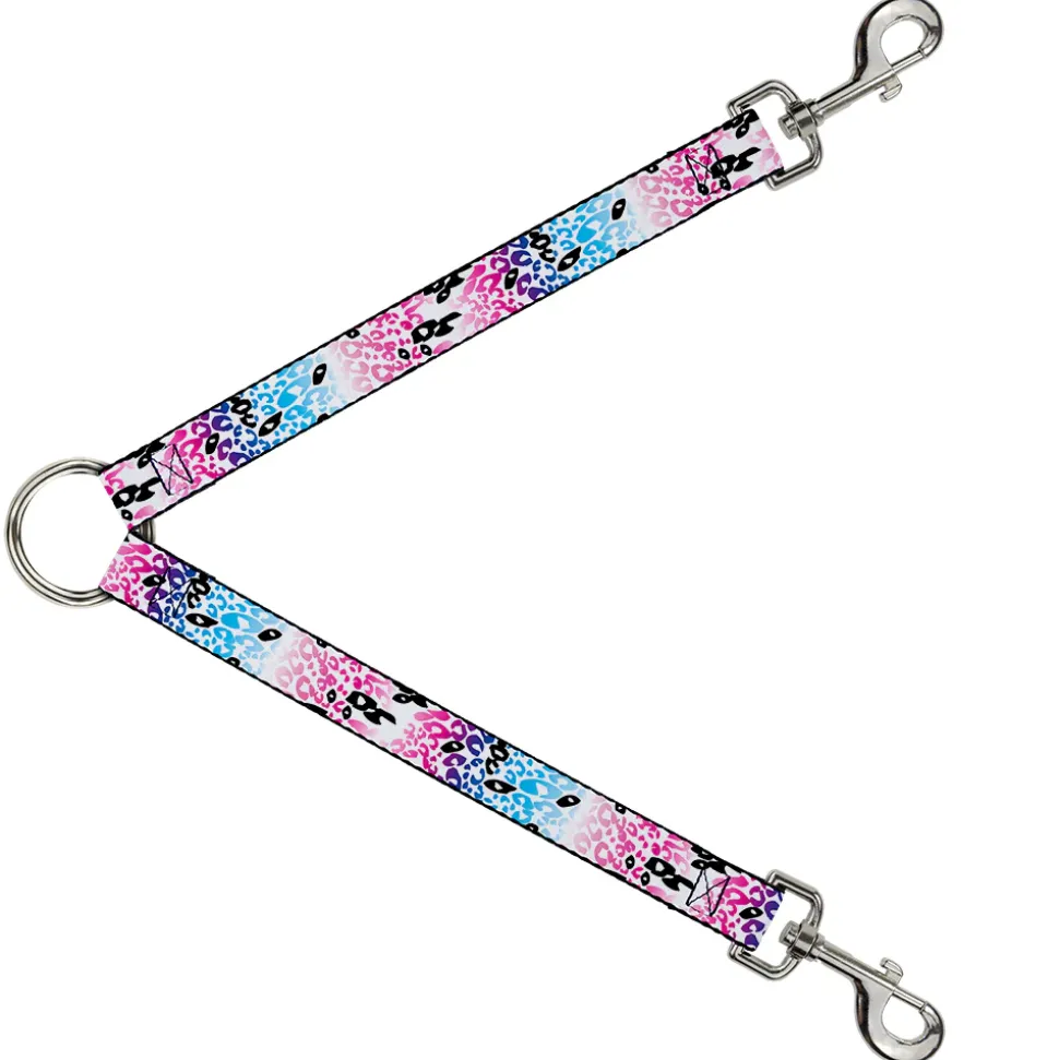 Dog Leash Splitter – Leopard White/Pinks/Blues/Black