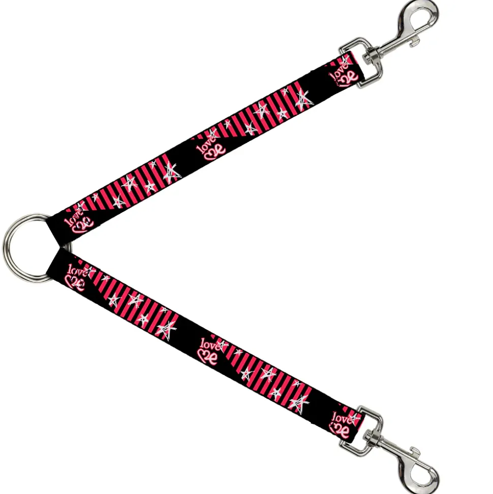 Dog Leash Splitter – Love Me w/Sketch Stars & Stripes Black/Fuchsia/White