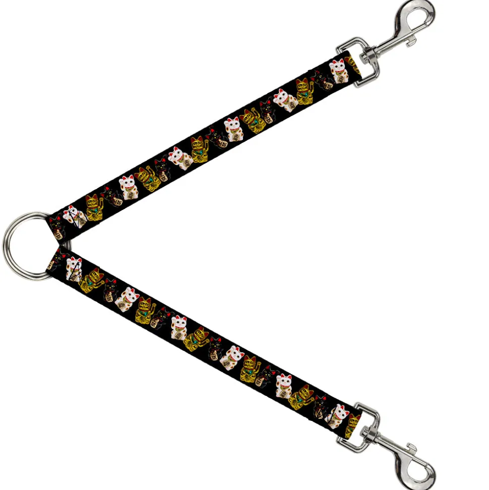 Dog Leash Splitter – Maneki Neko Lucky Cats Gold/Black/White