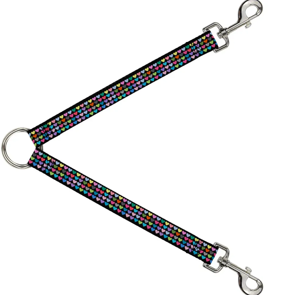 Dog Leash Splitter – Mini Hearts Black/Multi Color
