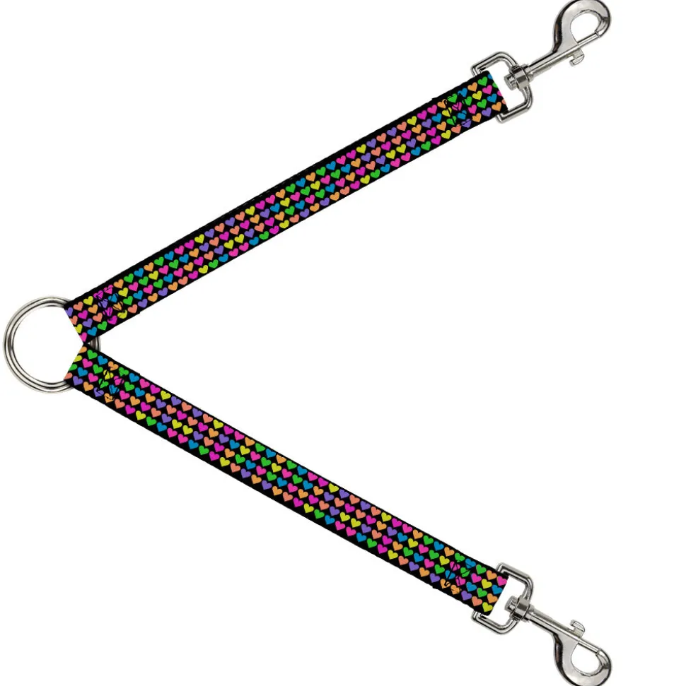 Dog Leash Splitter - Mini Hearts Black/Multi Neon