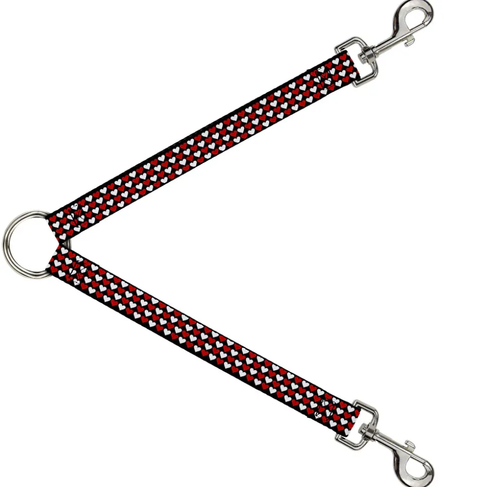 Dog Leash Splitter - Mini Hearts Black/Red/White