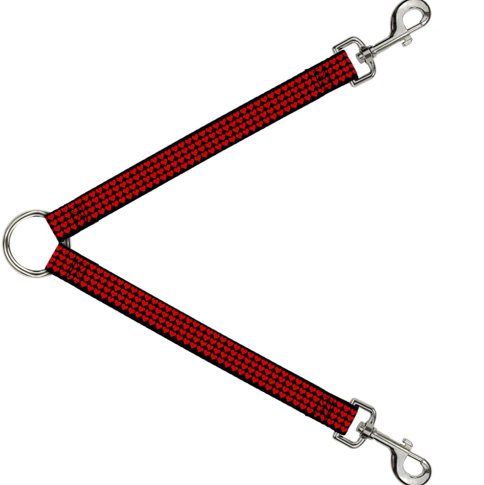 Dog Leash Splitter - Mini Hearts Black/Red