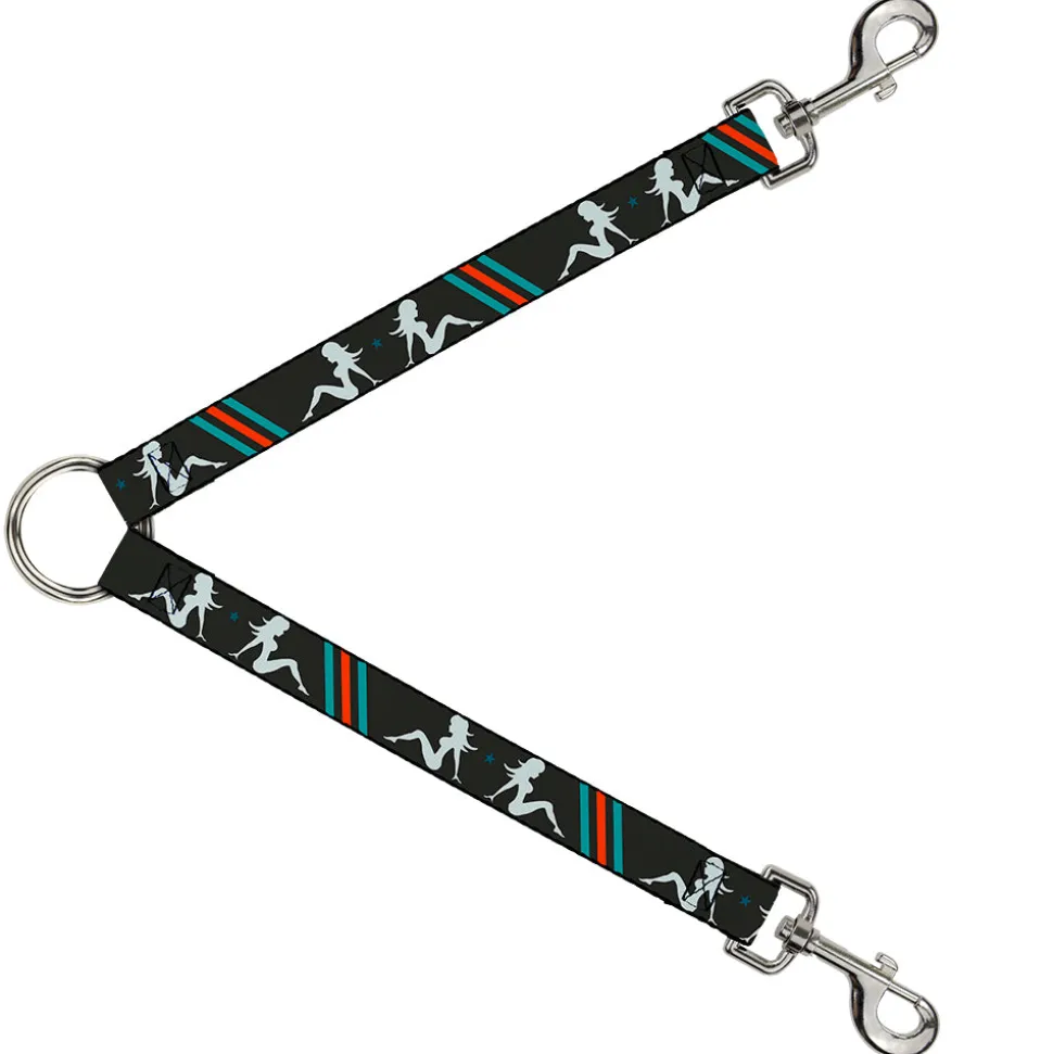 Dog Leash Splitter – Mud Flap Girls w/Stripes Gray/Turquoise/Orange