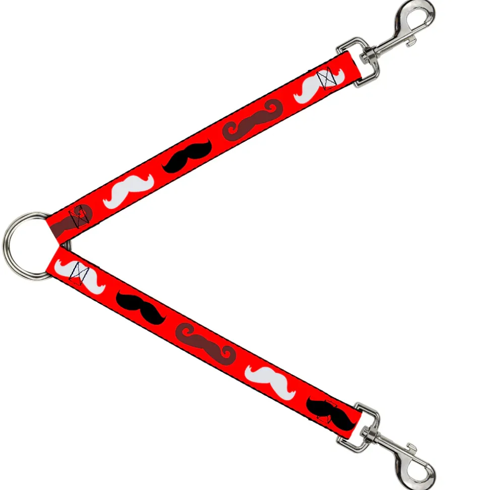 Dog Leash Splitter – Mustaches Red/Brown/White/Black