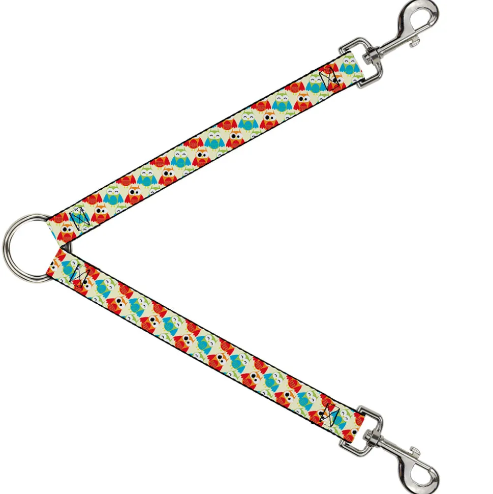 Dog Leash Splitter – Owl Eyes Yellow/Reds/Blues