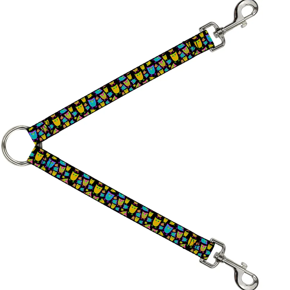 Dog Leash Splitter - Owls Black/Multi Neon