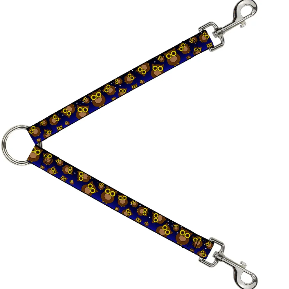 Dog Leash Splitter – Owls Scattered Black/Blue-Fade/Yellow