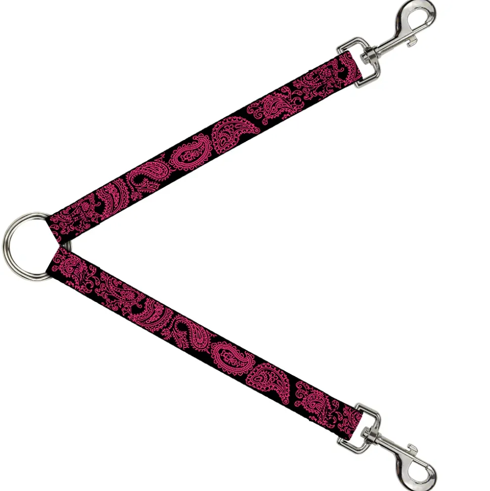 Dog Leash Splitter – Paisley Black/Neon Pink