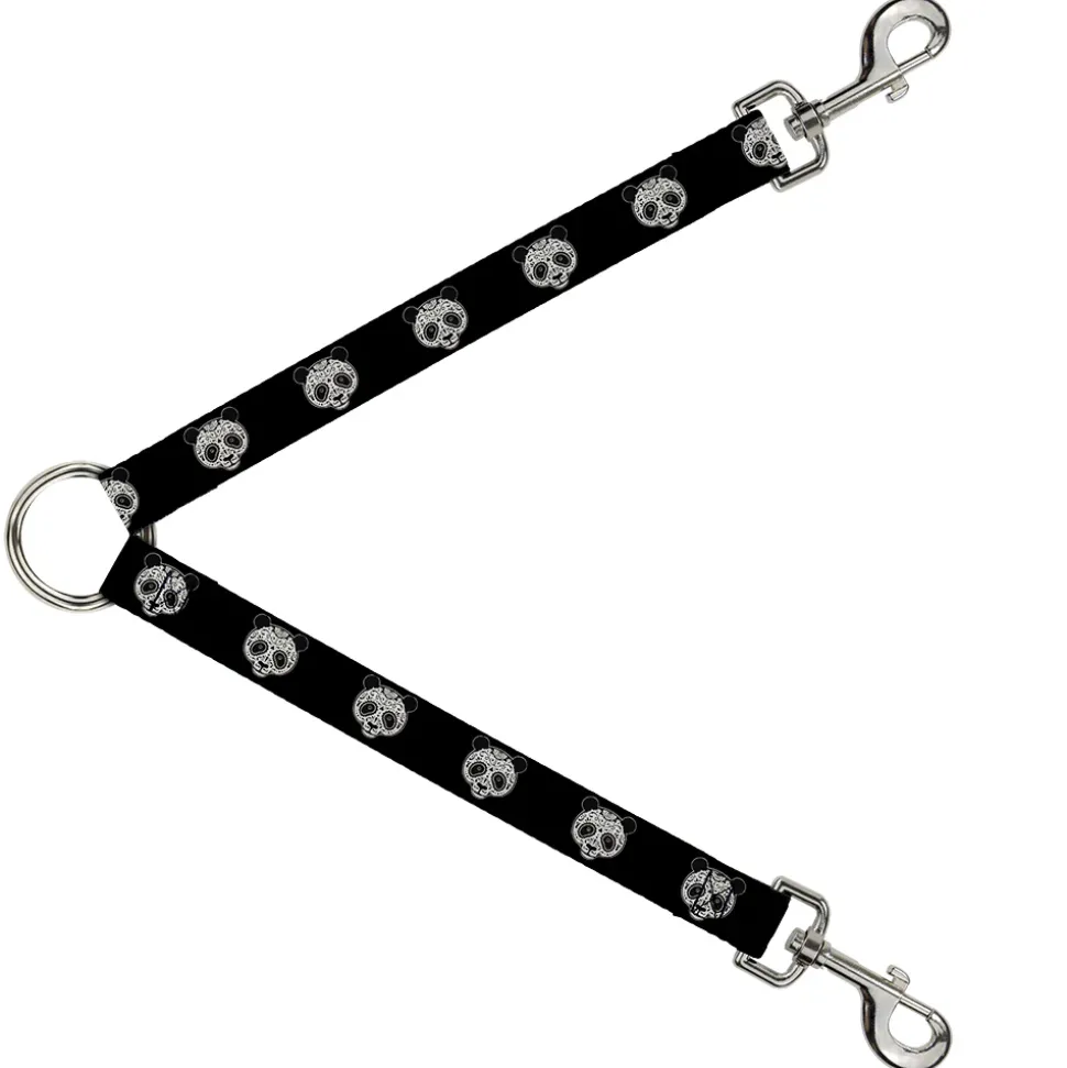 Dog Leash Splitter – Panda Bear Sugar Skull Black/White