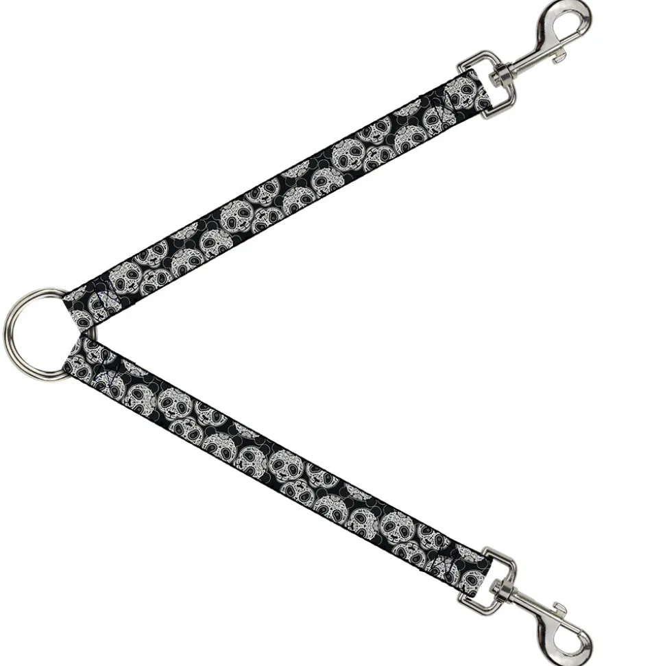 Dog Leash Splitter – Panda Bear Sugar Skull Scattered Black/White