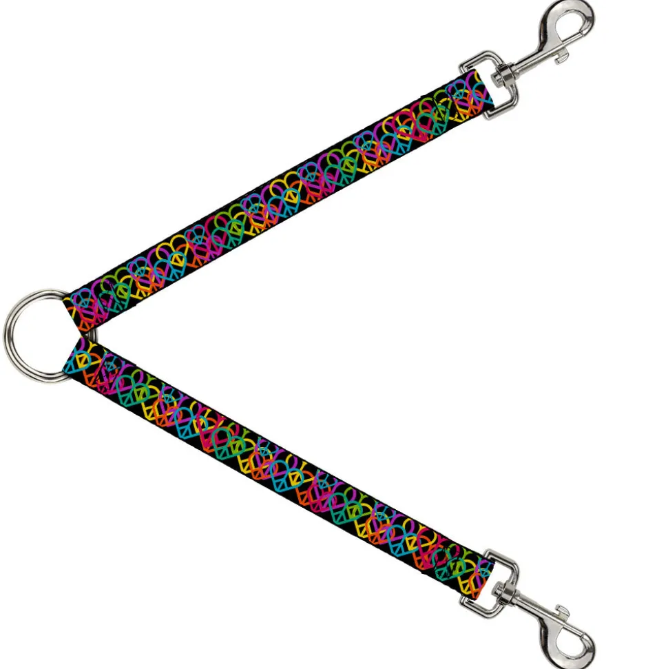 Dog Leash Splitter – Peace Hearts Stacked Black/Neon