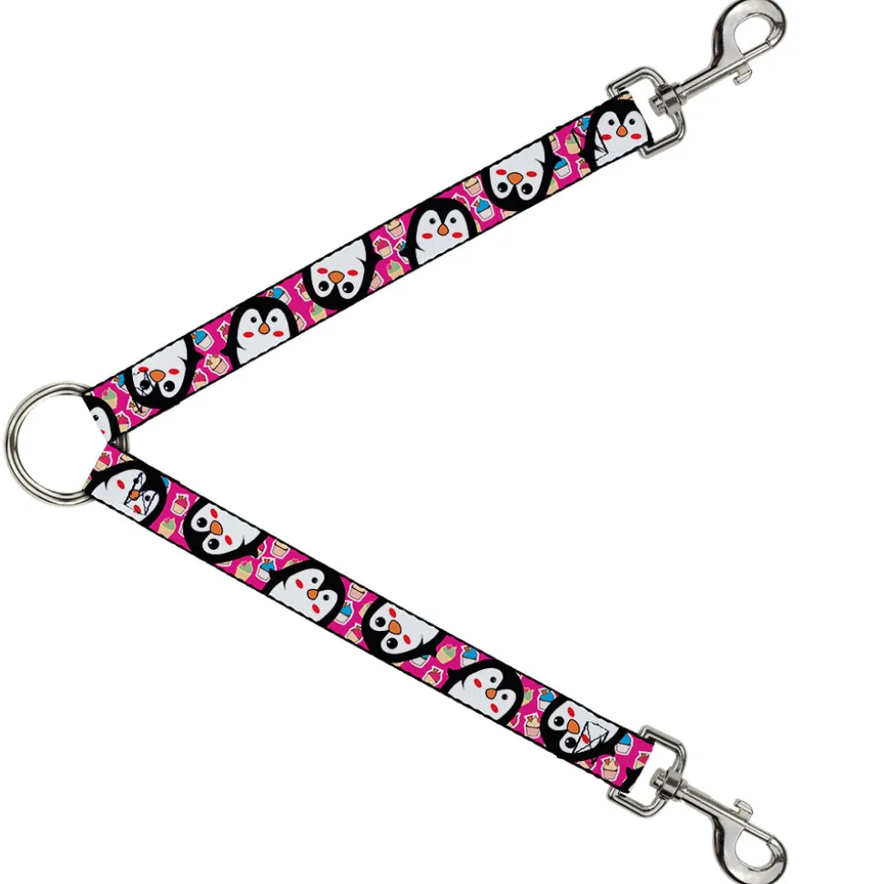 Dog Leash Splitter – Penguins w/Cupcakes Fuchsia/Multi Color