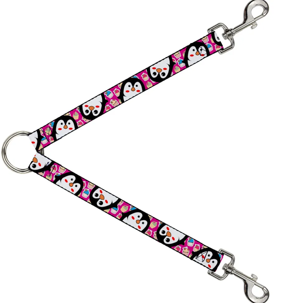 Dog Leash Splitter – Penguins w/Cupcakes Fuchsia/Purple/White