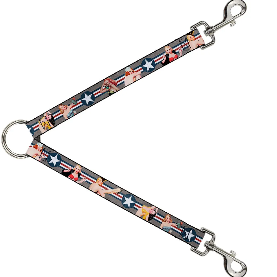 Dog Leash Splitter - Pin Up Girl Poses CLOSE-UP Star & Stripes Gray/Blue/White/Red