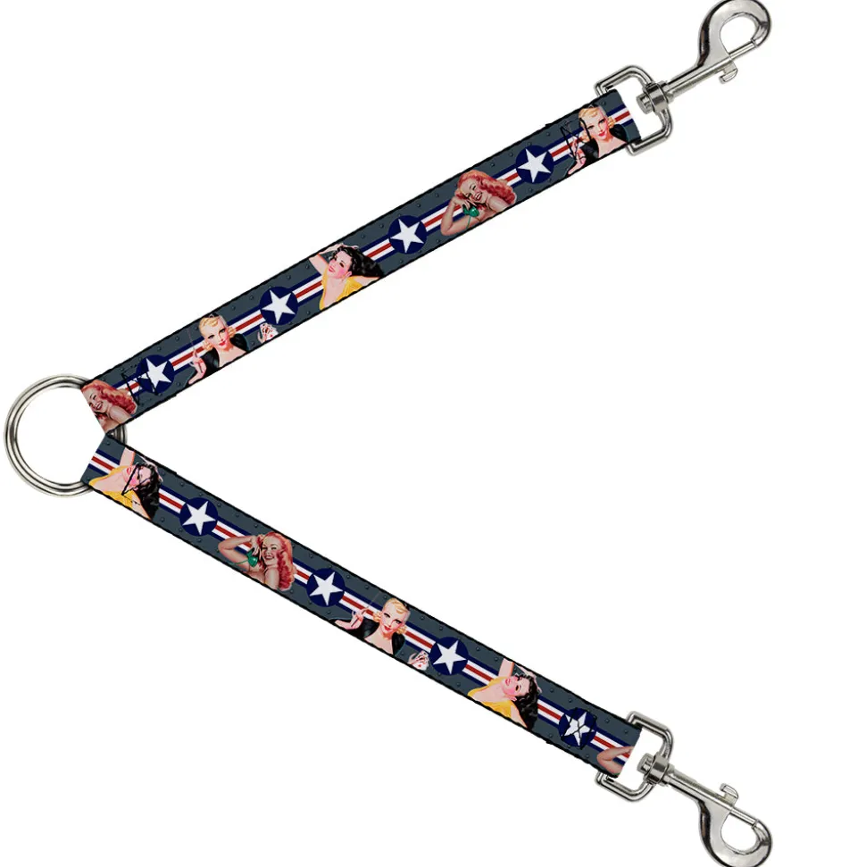 Dog Leash Splitter – Pin Up Girl Poses Star & Stripes Gray/Blue/White/Red