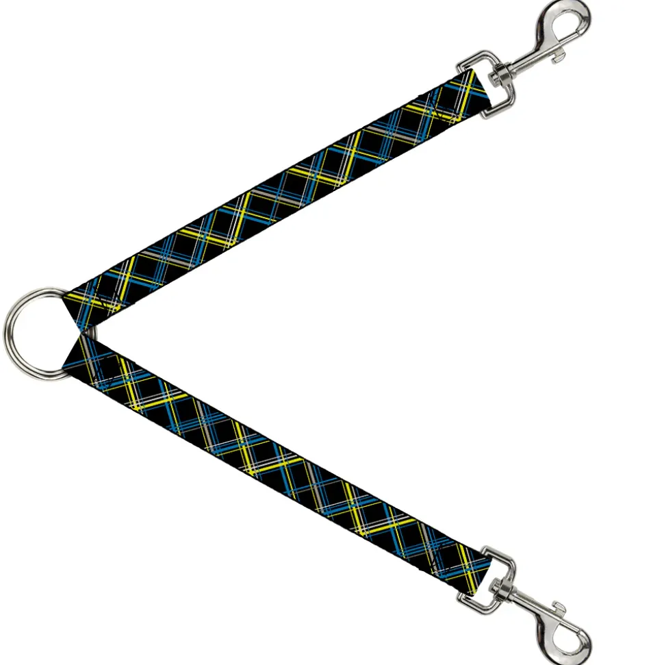 Dog Leash Splitter - Plaid Black/Yellow/Turquoise/Gray