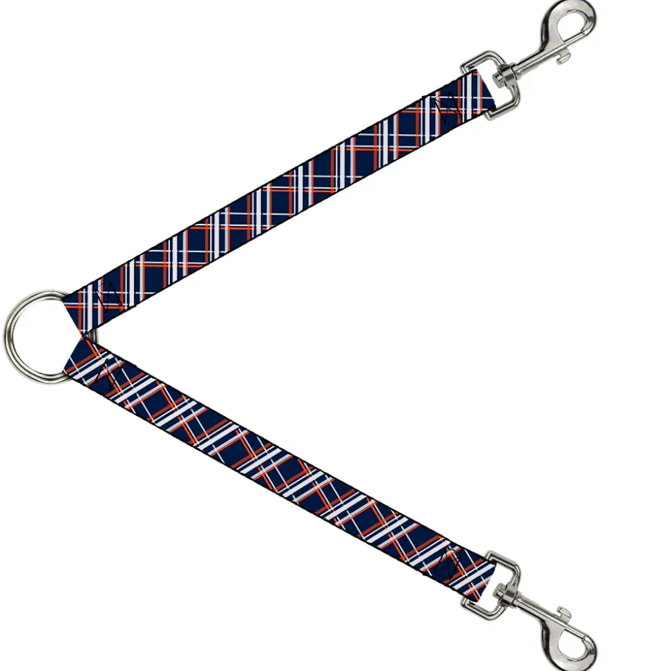 Dog Leash Splitter – Plaid X2 Navy/White/Orange