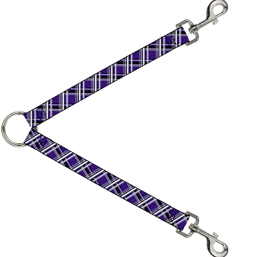 Dog Leash Splitter – Plaid X2 Purple/Gray/White/Black