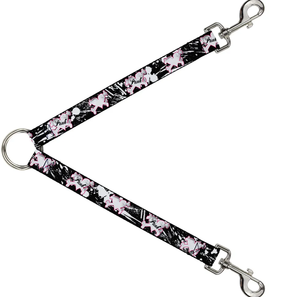 Dog Leash Splitter – Punk Heart & Cross Bones w/Splatter Black/White