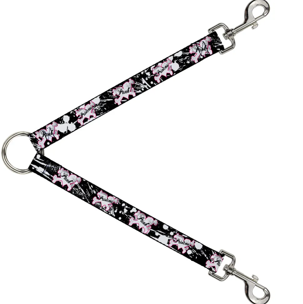 Dog Leash Splitter – Punk Princess Heart & Cross Bones w/Splatter Black/White