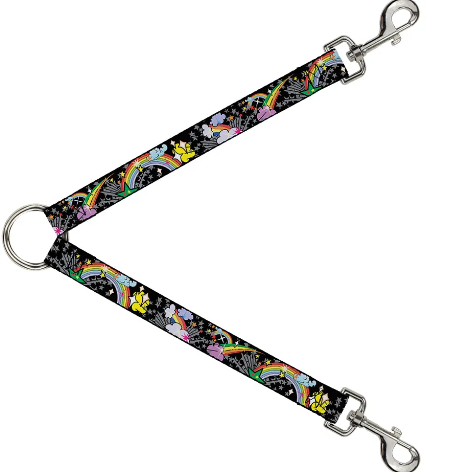 Dog Leash Splitter – Rainbow Cloud Stars Black