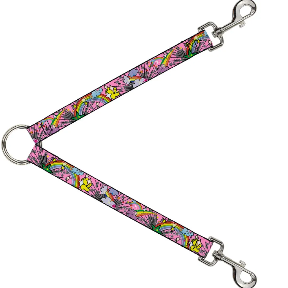 Dog Leash Splitter – Rainbow Cloud Stars Pink