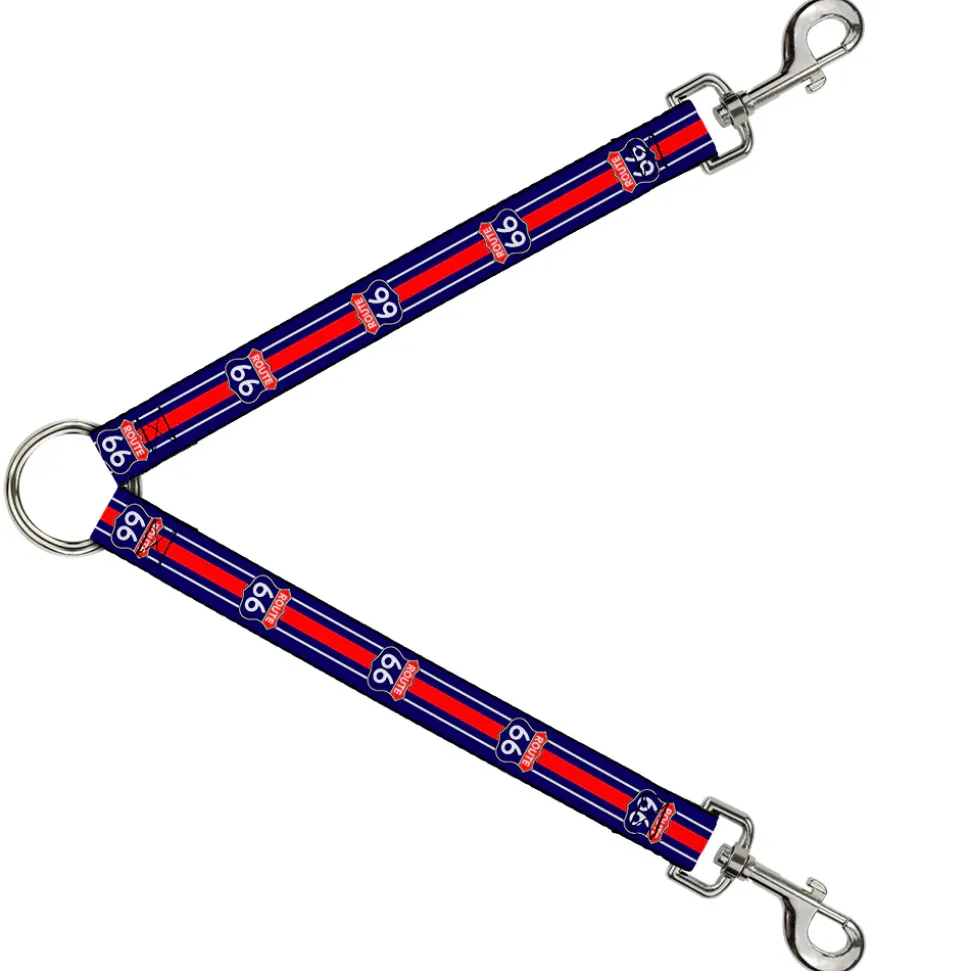 Dog Leash Splitter – ROUTE 66 Highway Sign/Stripe Blue/White/Red
