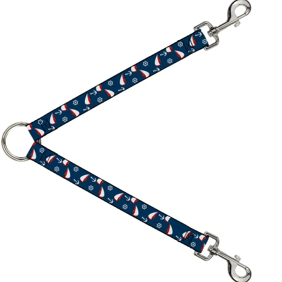 Dog Leash Splitter – Sailboat Anchor Helm Scattered Navy White Red